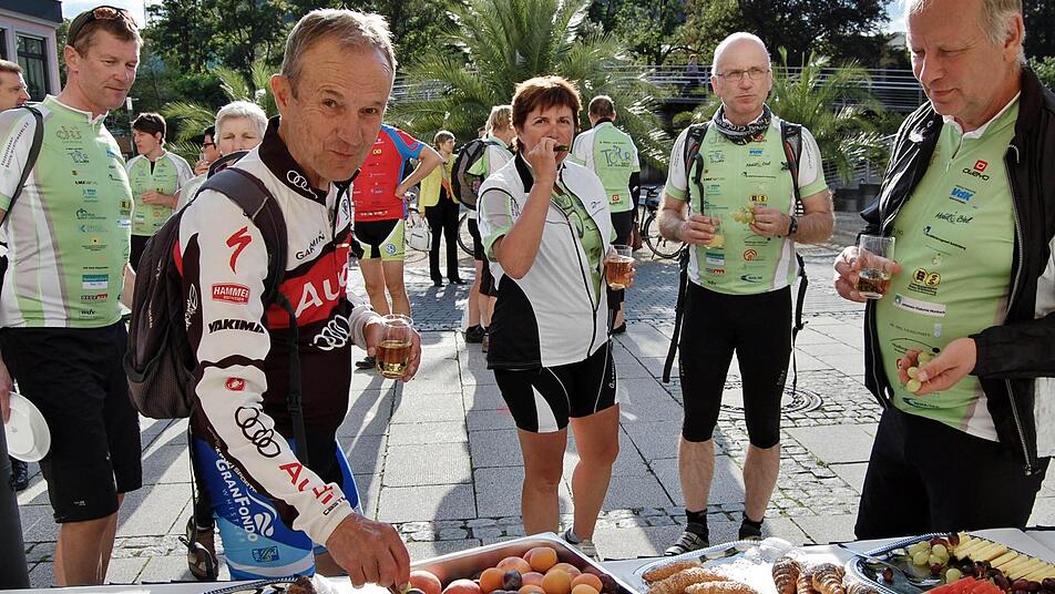 Tour-Initiator Hubert Seiter, Erster Direktor der DRV Baden-Württemberg und zugleich geschäftsführender Vorstand des veranstaltenden Krebsverbandes, dankte im Namen der Radler für den herzlichen Empfang und lobte die reibungslose Zusammenarbeit: "Ich habe nur zweimal telefoniert und schon war alles klar." Für ihn ist die neuntägige Radtour jedes Jahr erneut eine wichtige Erfahrung: Die Teilnehmer ohne Handicap lernen, ihren behinderten Mitradlern zu helfen, nur wo Hilfe wirklich gewollt ist. "Das ist eine hochsensible Angelegenheit", denn in der heutigen Gesellschaft hätten viele den richtigen Umgang mit Behinderten verlernt. "Auf dieser Tour müssen alle lernen, es eine ganze Woche miteinander auszuhalten." Das Vorhaben scheint geklappt zu haben: Die Stimmung unter allen Teilnehmern war hervorragend.
