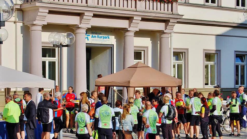 Beeindruckt von der Leistung der Behinderten, war Oberbürgermeister Kay Blankenburg trotz seines Urlaubs persönlich zur Begrüßung gekommen. "Sie sind der beste Beweis, dass man auch nach Rückschlägen wieder zurück ins Leben finden kann", rief er den Radlern mit Handicap zu. Daran zeige sich auch, "dass Rehabilitation kein bezahlter Urlaub, sondern ein notwendiger Bestandteil unserer Gesellschaft ist." An die Chefs der Deutschen Rentenversicherung und ihrer fünf Bad Kissinger Kliniken gewandt, meinte der Oberbürgermeister: "Die Reha ist für Bad Kissingen wichtig. Aber Bad Kissingen ist auch für die Reha wichtig."
