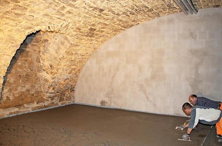 Am Dienstag waren Mitarbeiter des städtischen Bauhofes mit Estricharbeiten beschäftigt.