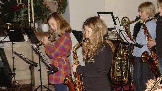 Blechbläser-Quintett, Nachwuchsgruppe, Saxophon-Quartett und Hauptorchester unter der Leitung von Jürgen Kröckel, der auch durch das gut einstündige Programm führte, begeisterten das Publikum. Nach dem "Adeste fideles" mit dem Bläserquintett, Martina Kalnischkies, Jürgen Kröckel, Bernhard Schleretht, Uwe Friedlein und Sascha Pfrang zeigten die acht Nachwuchsmusiker mit einem Weihnachtslieder Potpourri, was sie nach sechs Wochen Probearbeit drauf hatten.