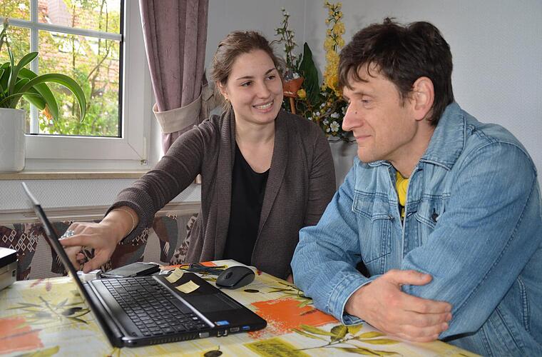 Oleg Rautenberg hat einen wichtigen Termin. In Schweinfurt. Doch wie kommt er dahin? Der 44-Jährige wohnt in Waldfenster und ist auf öffentliche Verkehrsmittel, Bus und Bahn, angewiesen. Veronika Richler klappt ihren Laptop auf und sucht im Internet eine passende Verbindung heraus. "Dein Zug geht halb zwölf ab dem Bahnhof Bad Kissingen", sagt sie. Oleg nickt zufrieden und bedankt sich.