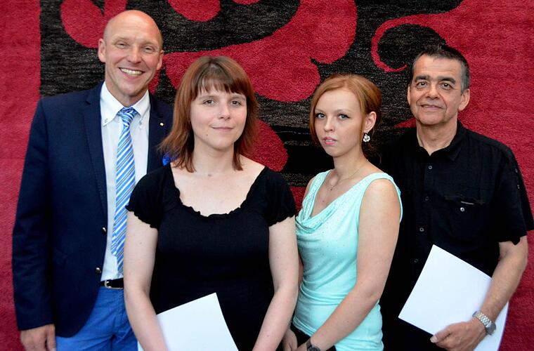 Eine besondere Würdigung auf Grund ihrer schulischen Leistungen erfuhren die Schüler Olga Esch, Christine Fröber, Lena Kofer und Patrick Kulata (alle Verkäufer) sowie Sascha