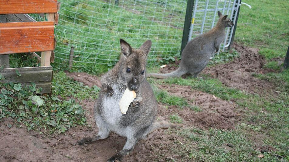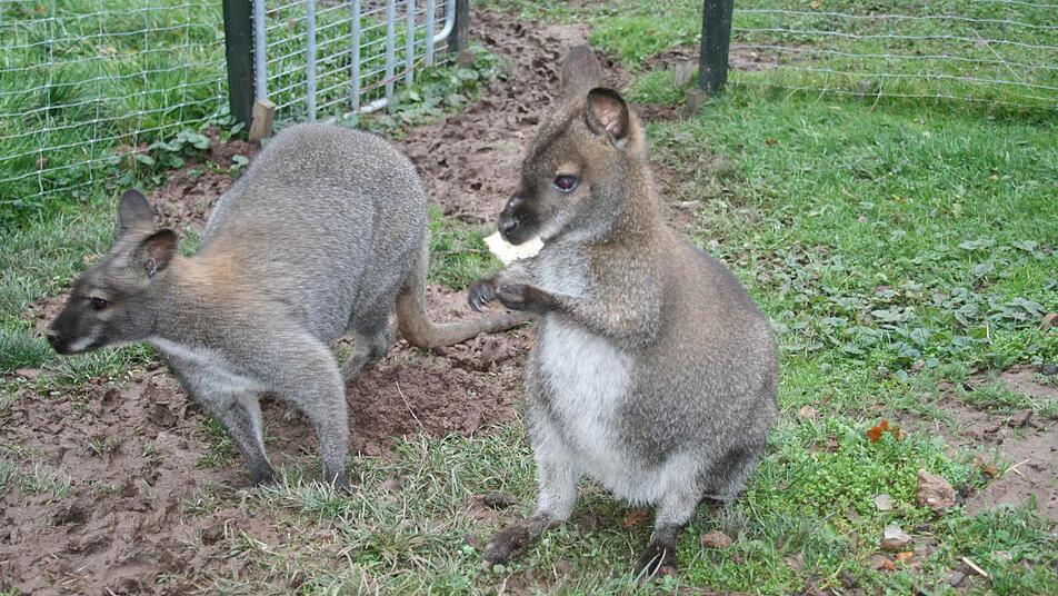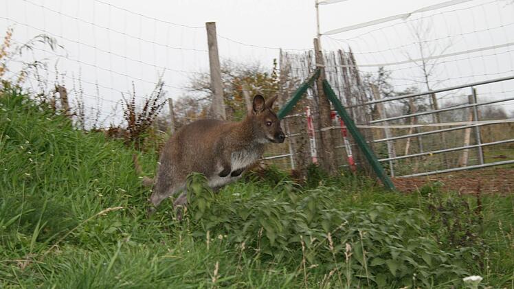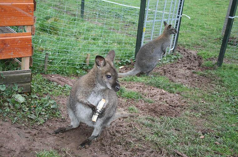 Manch ein Spaziergänger wird jetzt seinen Augen nicht trauen, wenn er seinen Blick über das Gehege schweifen lässt: "Ist da jetzt wirklich ein Känguru über die Wiese gehüpft?". Richtig gesehen. Seit Weihnachten vergangenen Jahres wohnt ein Wallaby-Pärchen in direkter Nachbarschaft zu den Alpakas.