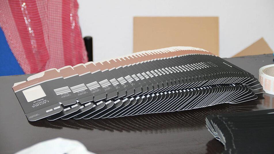 Die Schachteln, in denen das Puder verkauft wird, produziert eine Druckerei in Würzburg. Und dann kommt Alexandra Martin und stellt die Schachteln auf. Stück für Stück.