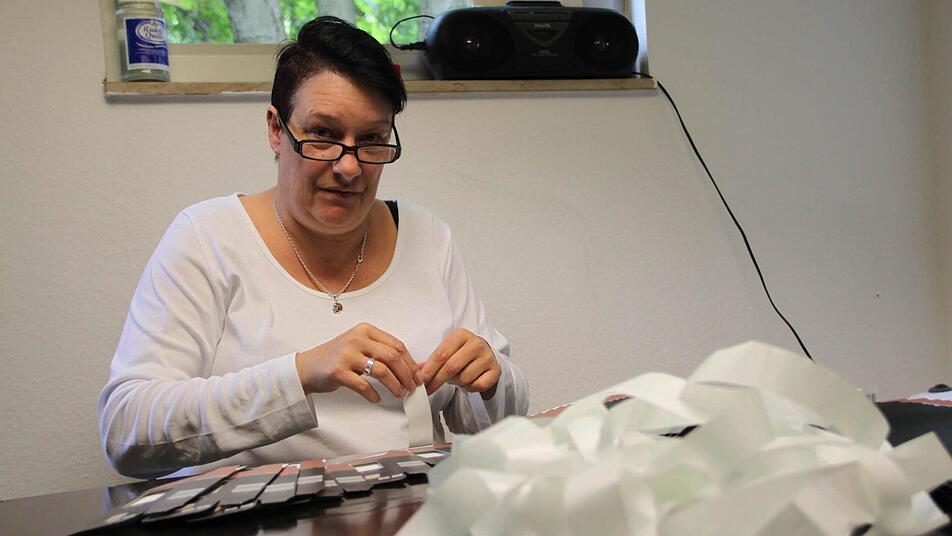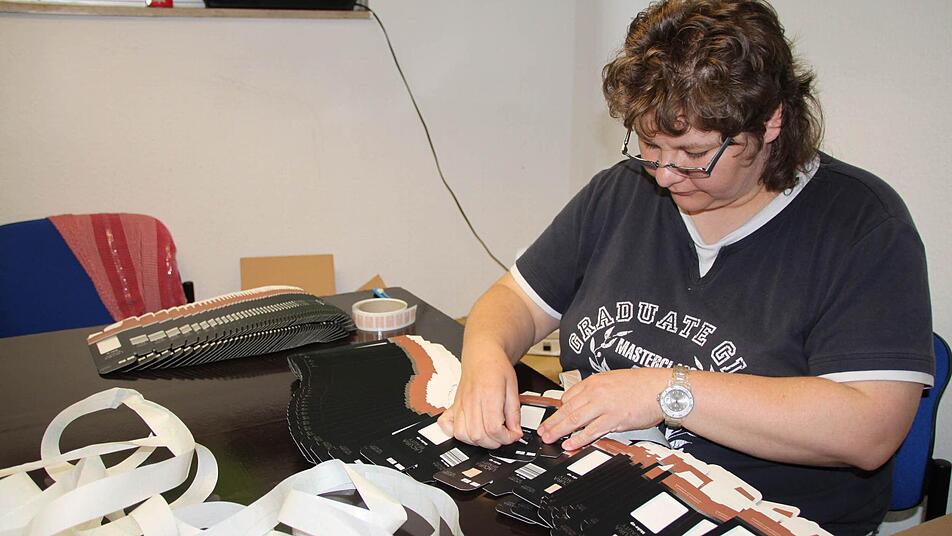 Mit Gesten und einzelnen Worten verständigt sich die gehörlose Frau mit den anderen. Ursprünglich hatte Holletzek mal Näherin gelernt. Nach dem Umzug in die Rhön vor 15 Jahren und den beiden Kindern hatte sie es schwer, wieder in ihren Beruf zurück zu finden. Nun verdient sie sich bei Kaiserdisplay in Teilzeit etwas dazu.