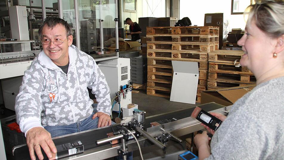 Am ersten Arbeitstag gibt es Käsekuchen. "Den hat meine Frau gebacken", verrät Hans Kaiser, der zusammen mit ihr - Mandy Golenz - die Kaiserdisplay GmbH führt. Rund 50 neue Mitarbeiter hat Kaiser in Bad Brückenau eingestellt. 14 davon arbeiten in Vollzeit, 16 in Teilzeit und 18 als Aushilfe. Sie verpacken Artikel von Clearasil, Veet oder Lacura. Im Akkord.