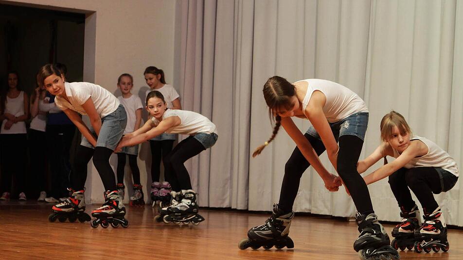 Jugend Variationen des Kastenturnens und Inline-Skating zeigten die neun- bis 13-jährigen Mädchen der Turngruppen von Katharina Fuchs und Ulrike Abersfelder. Die beiden Trainerinnen selbst stellten eine ausgewogene Akrobatiknummer und Übungen am Stufenbarren vor.