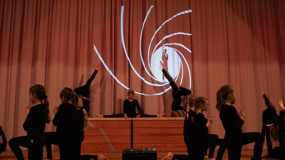 Leistungssport Die 19 jüngsten Leistungsturnerinnen von 7 bis 13 Jahren unter der Leitung von Tina Ebert und Irmi Hartmann zeigten heuer nach James Bond-Filmmusik ihr turnerische Können an Boden und Kasten. Die Leistungsturnerinnen von 13 bis 47 Jahren unter Leitung von Gerhild Rittig- Storch zeigten ihr Können im Bodenturnen und am Stufenbarren.