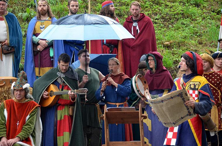 Dem eigentlichen Sängerwettstreit tat dies jedoch keinen Abbruch und einem "richtigen Ritter", sofern er nicht in der metallenen Rüstung steckt, tun die Regentropfen auch nicht weh. Schnupfen und Husten gehörten damals in den zugigen Burgen sowieso zum gesundheitspolitischen Alltag ...