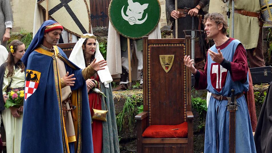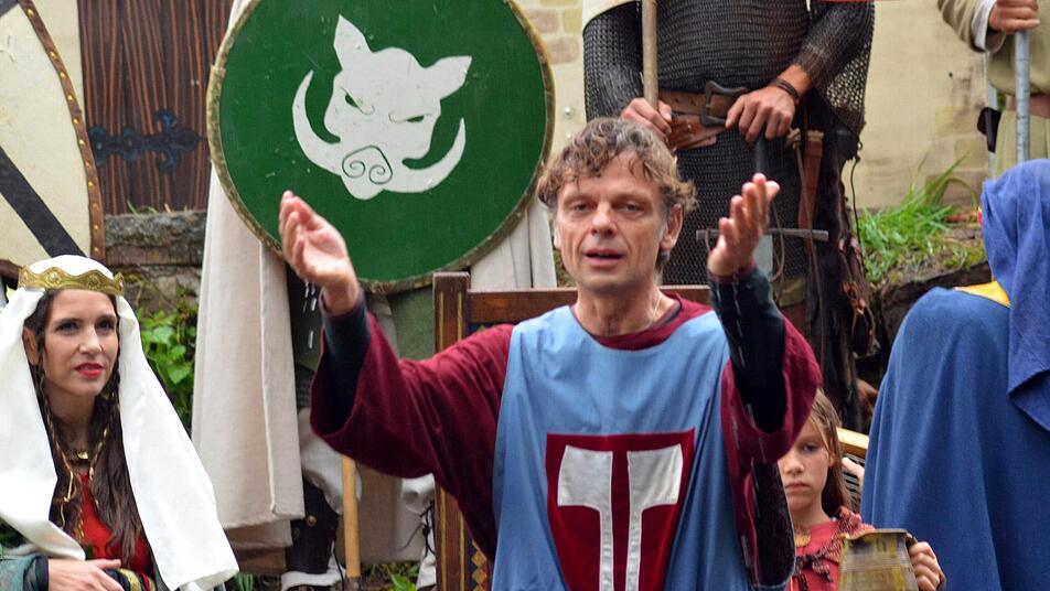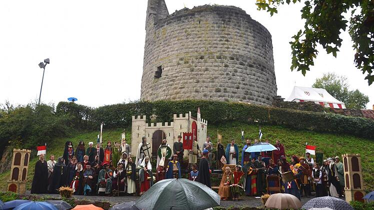 Beim Sängerwettstreit auf derBurgruine Botenlauben hatten die Minnesänger, die zum Wettstrweit angetreten waren, dieses Jahr im Wetter noch einen weiteren Gegner. Während sich das Publikum mit Schirmen, Regenjacken und Stiefeln noch einigermaßen gegen Regen und Kälte schützen konnte, mussten die Sänger und ihr gesamtes Fußvolk stilecht ohne Regenschutz auskommen.