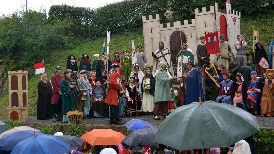 Gegen den Regen war kein Kraut gewachsen. Aber die Minnesänger stellten sich trotzdem dem berühmten Wettstreit.