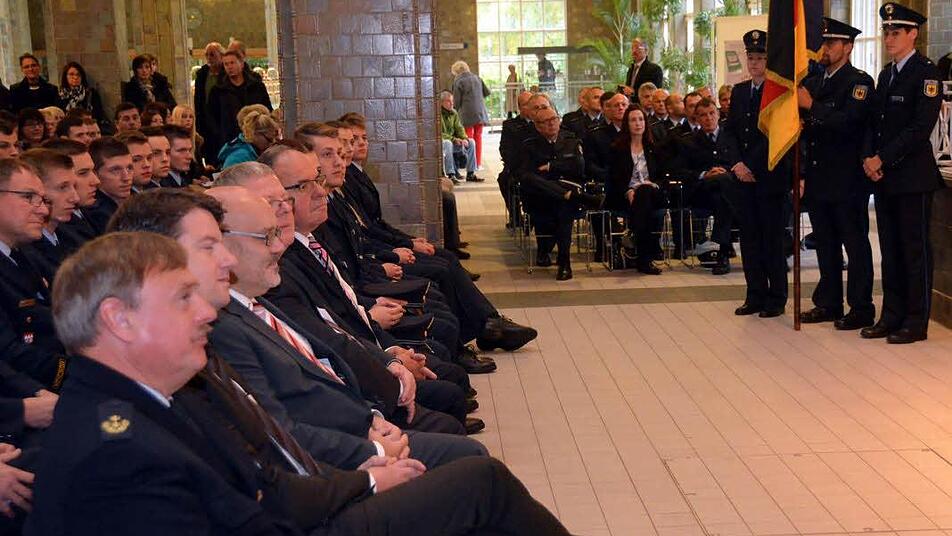 Zu ihrer Vereidigung waren nicht nur Eltern, Freunde und Verwandte der Dienstanfänger eingeladen, sondern auch Persönlichkeiten des öffentlichen Lebens aus Stadt und Land-kreis Bad Kissingen. So konnte der Leiter des Bundespolizei-Aus- und -Fortbildungszentrums Oerlenbach, Polizeidirektor Thomas Lehmann, auch den scheidenden Präsidenten der Bundespolizeiakademie, Bernd Brämer