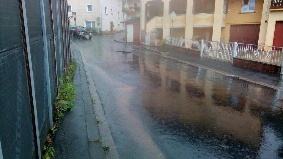 Überrascht wurden aber nicht nur Autofahrer: "Ich wollte nur kurz in den Keller und stand plötzlich im Wasser", erinnert sich Patrick Hartmann. Draußen auf der Straße hatte es da bereits die Gulli-Deckel abgehoben. Patrick Hartmann und Victoria Dreßler haben sich im April 2014 ein Haus in der Rhönstraße gekauft.