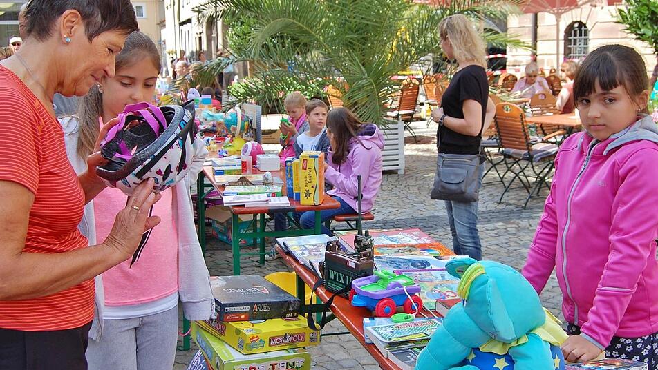 Kinder trennen sich von ihren Spielsachen und anderen Habseligkeiten und verkaufen sie beim Kinderstadtmarkt in Bad Kissingen.