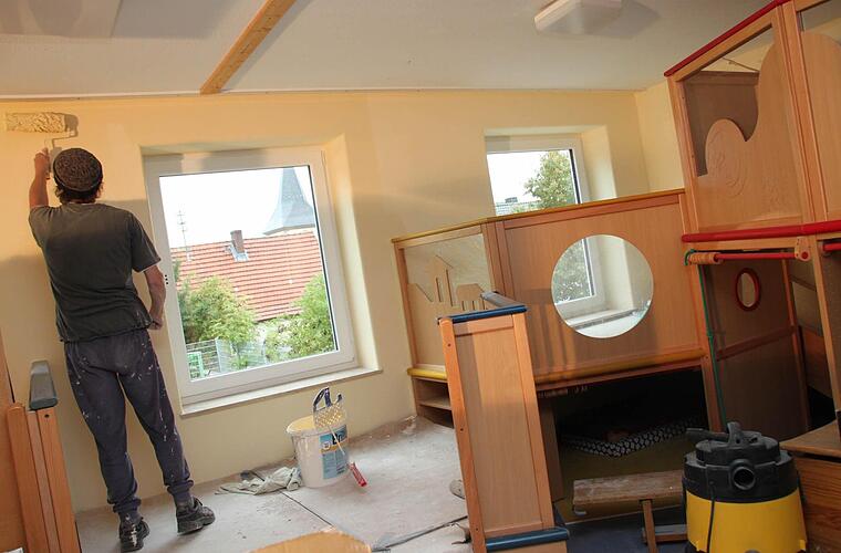 "Der Einsatz der Eltern ist unwahrscheinlich", lobt er die abendlichen Arbeitseinsätze, allen voran das Engagement von Martin Geßner, dem Vorsitzenden des Kindergartenvereins. "Das spart uns viel Geld". Thomas Geßner ist einer der Väter, die im Kindergarten mithelfen, wenn sie gebraucht werden. Derzeit streicht er einen Raum. "Es macht Spaß", betont er. Sonst würde er die Arbeit wohl nicht machen.