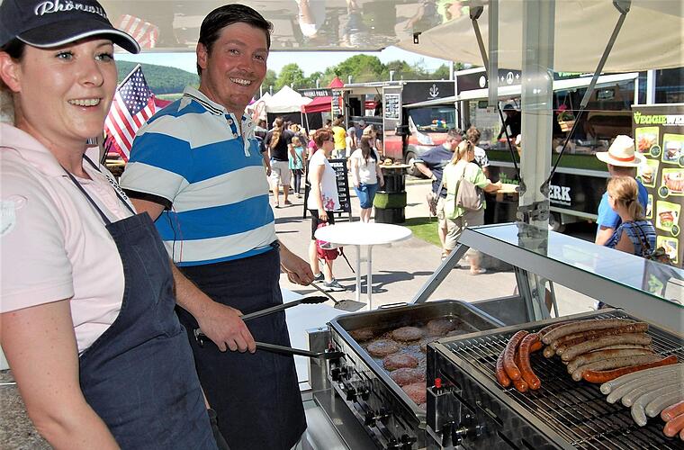 Wie schon im Vorjahr feierte der "Kisspark" im Gewerbegebiet am Wolfsgraben auch sein zweijähriges Bestehen am Sonntag mit einem Streetfood-Festival. 14 Anbieter kamen mit ihren Foodtrucks aus ganz Deutschland und boten ein vielfältiges Speisensortiment für jeden Geschmack. "Ich bin selbst ein großer Fan der modernen Streetfood-Küche", nannte Frank Sterrmann als Grund für sein zweites Festival. "Da bekommt man nur frisches, manchmal auch verrücktes Essen in die Hand." Alle Anbieter habe er in den vergangenen Monaten bei Besuchen anderer Festivals kennengelernt und zum Firmenjubiläum eingeladen - so wie die beiden Ribwich-Trucks.