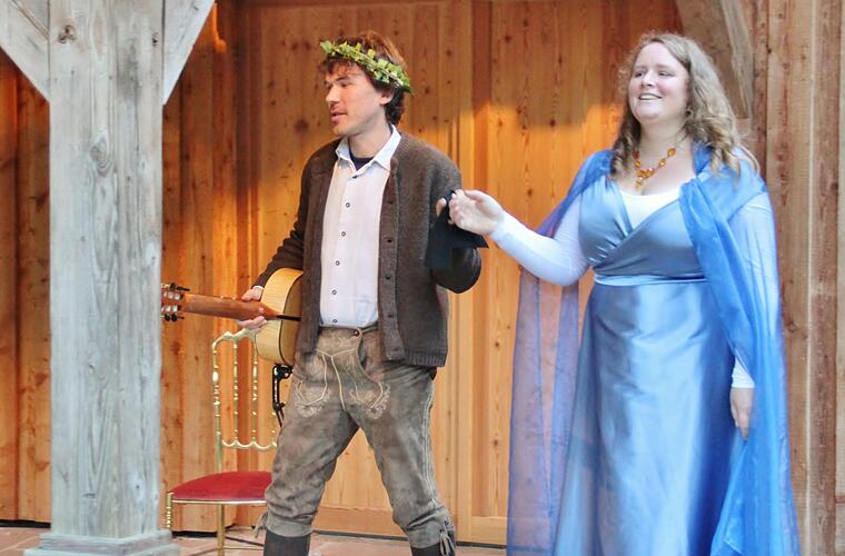 Am späten Nachmittag, als es im Park dann schon ruhiger wird, findet die musikalische Reise durch die Märchenzeit einen unerwartet eindrucksvollen Höhepunkt. Bettina von Hindte gestaltet ein Konzert mit Liedern von Schubert, Weber und Dessau und entführt unter den Linden und Eichen des Parks in eine Traumwelt. Die Idee fasziniert. Sie sucht Kunstlieder aus, die zum Thema Wald, Märchen, Mythen und Liebe passen, verwebt sie in eine Geschichte aus Legende, Sage und Wirklichkeit, die sie im Dialog mit ihrem Partner Konrad Naegeli als Antwort- und Fragespiel spannend erzählt.