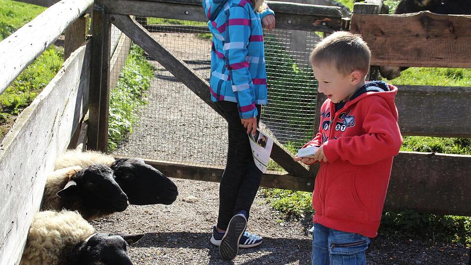 Derweil können Simon und Felix Weber, gar nicht genug kriegen, die Tiere zu füttern. Zwei Tüten Wildfutter haben sie schon geopfert und noch immer strecken die Rhönschafe ihre schwarzen Köpfe durch den Bretterzaun. Die Eltern Jennifer und Robert Weber aus Bad Kissingen freuen sich mit den vier- bzw. fünfjährigen Jungs, die immer wieder zum Klaushof kommen: "Weil der Klaushof immer ein Erlebnis ist", wie der engagierte Rot-Kreuzler es ausdrückt.
