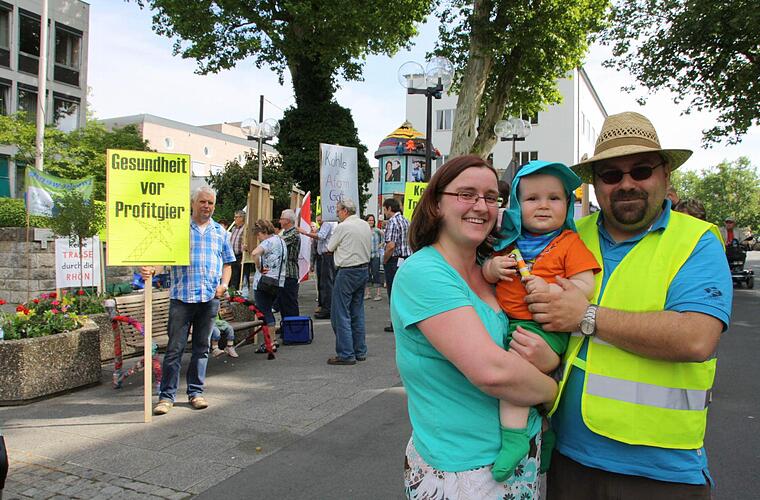 "Wir wollen für unsere Heimat, für die Natur und für unsere Nachfahren das Saaletal so erhalten, wie es ist", fasst Kerstin Orzol ihre Beweggründe zusammen, sich gegen die Trasse stark zu machen. Die 30-Jährige ist unter anderem Kassiererin der Bürgerinitiative (BI) Elfershausen. Mit ihrem Mann Stephan und ihrem Sohn Leonard wohnt sie in Elfershausen und befürchtet, irgendwann 70 Meter hohe Strommasten vor die Haustür gesetzt zu bekommen.