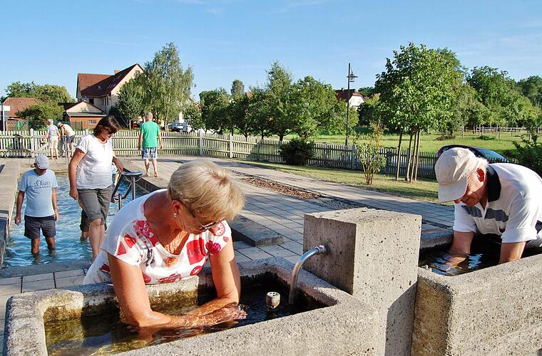 Was bei Temperaturen jenseits der 30 Grad hilft, ist kaltes Nass. Die Ebenhäuser Wassertreter schwören auf ihr Kneippbecken. Nebeneffekt: Für Stammgast Herbert Schleinhege ist die Erkältung ein Fremdwort.