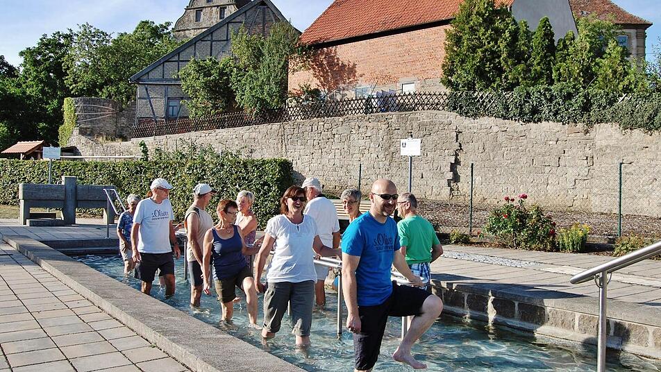 "Viele Wanderer und Radfahrer halten hier an und kneippen gern", sagt Werner Dengler, Vereinsvorsitzender des Trimm-Dich-Verein Ebenhausen. Seit acht Jahren kümmert sich der um das Kneippbecken und dessen Umfeld unterhalb des Schlosses, tatkräftig unterstützt vom Oerlenbacher Bauhof. 150 000 Euro hat die im Mai 2007 in Betrieb genommene Anlage gekostet.