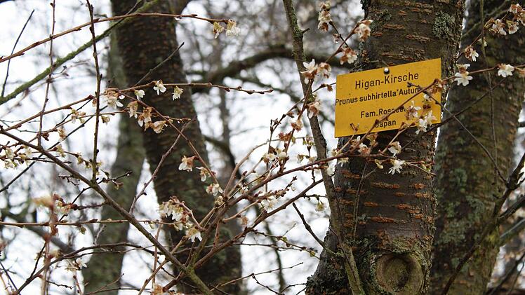 Die Baumkronen im Bad Kissinger Luitpoldparks sind Labyrinthe aus kahlen Ästen und Zweigen. Die Temperaturen liegen knapp über dem Gefrierpunkt. Ein paar Regentropfen rieseln herab. In den Ästen einiger Bäume leuchten helle Punkte. Anfang Januar sind das nicht etwa Schneeflocken, sondern Blüten.