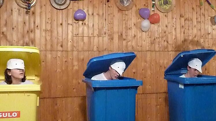Auch die A-Schützenjugend trat unter der Regie von Hilmar Kleinhenz als rockig-singende Mülltonnen auf. "Wenn sich alle weiter so begeistert einbringen, ist die Zukunft des Wermerichshäuser Faschings gesichert", freute sich der Moderator.