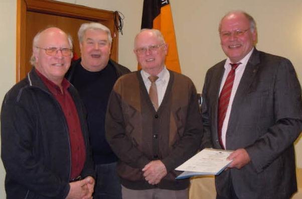 Langjährige Treue Der Kolpingvorsitzende Albert Laudensack ehrte für 40jährige Mitgliedschaft Adolf Heuring und Herbert Wolf. Desweiteren erhalten die Ehrung für 25-jährige Mitgliedschaft Wolfgang Weigand, für 40-jährige Mitgliedschaft Bruno Eckert und Guido Demel.