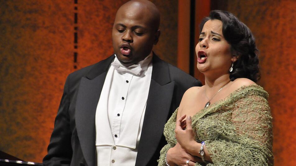 Die Sopranistin Camila Ribero-Souza und der Tenor Siyabonga Maqungo hatten ein abwechslungsreiches Programm für dieses Operettenkonzert zusammengestellt, das die Erinnerung an die großen Männer der Operette wach halten sollte. Zu hören waren die schönsten Lieder und Duette aus Jacques Offenbachs "Die schöne Helena", Emmerich Kálmáns Erfolgsoperetten "Gräfin Mariza" und "Die Csárdásfürstin" sowie aus Franz Lehárs "Giuditta". Mit wunderbaren ausdrucksstarken Stimmen bezauberten beide Sänger auf Anhieb. Die charmante Brasilianerin Camila Ribero-Souza überzeugte nicht nur mit ihrer einnehmenden Art, sondern auch mit einem lupenreinen klaren Sopran, der auch in den hohen Tonlagen keine Schwächen zeigte.