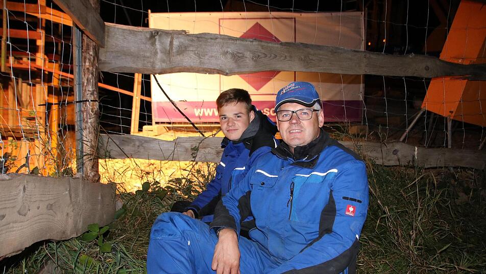 Rund 15 Arbeiter der Firma "Fuchs-Bau" und Mitarbeiter der Autobahndirektion legten eine Nachtschicht ein. Andere schauten sich das Spektakel in ihrer Freizeit an: "Wir haben das mit der Sperrung gelesen und sind auf Verdacht her gefahren", sagte Wolfgang Wehner aus Schondra, der die Aktion mit seinem Sohn Enrico vom östlichen Widerlager aus verfolgte. Enrico war auch bei der Sprengung der Sinntalbrücke bereits als Augenzeuge dabei. "Ich konnte damals leider nicht, das ärgert mich bis heute", erzählt sein Vater Wolfgang. Vor zwei Wochen hatten sie zufällig auf dem Heimweg die Anlieferung des Brückenträgers beobachtet. Rund ein Dutzend Schaulustige kamen auf beide Seiten der Baustelle zwischen Singenrain und Schönderling.