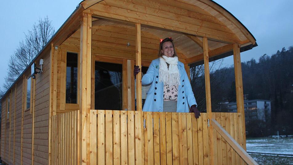Sarah Hübner, Jugendgruppenleiterin der Funky Fruits des Obst- und Gartenbauvereins Bad Brückenau, betrachtet das Ergebnis neben dem Backhaus. Seit September steht dort der Bauwagen neben dem Nutzgarten mit Gemüsebeeten, den rund 43 Kinder des Vereins in kleinen Gruppen im Sommer angelegt hatten. Die Erwachsenen des Vereins bauten den Wagen an einem Wochenende auf.