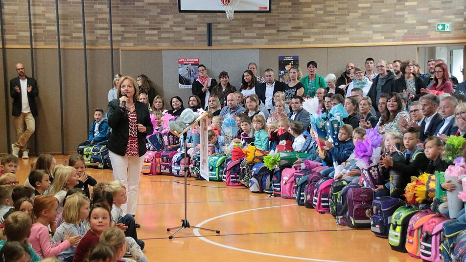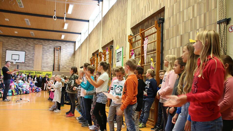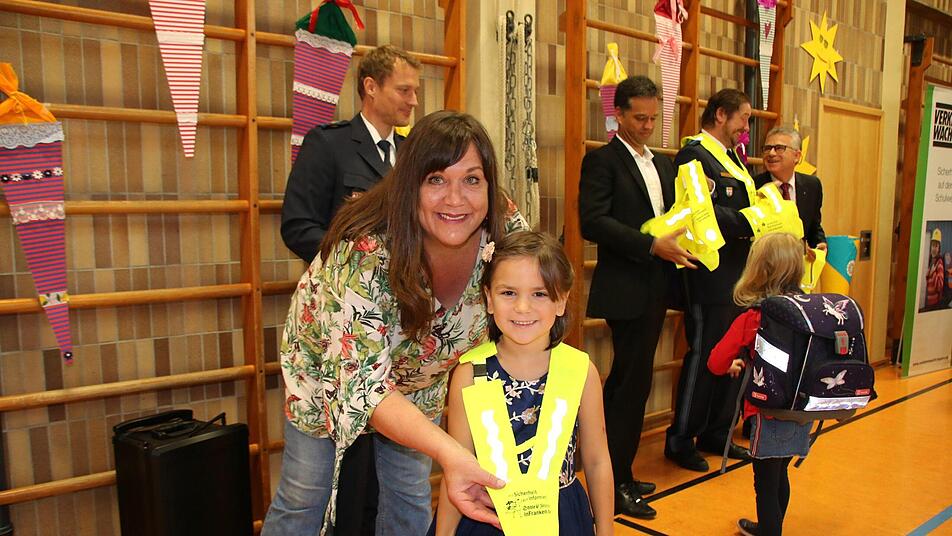 1970 begann die Verkehrswacht damit, Schulkinder mit orangenen Pudelmützen und Schals auszustatten. Später gab es Sicherheitsdreiecke mit Reflektor-Streifen. Seit 1982 ist die Sicherheitsausrüstung für Kinder kostenlos, weil die Saale-Zeitung die Aktion finanziell unterstützt. Seitdem gibt es auch die Auftaktveranstaltung unter dem Motto "Sicher zur Schule, sicher nach Hause" am ersten Schultag. Heuer war die Grundschule in Poppenlauer Gastgeber. "Wir haben aktuell 199 Grundschüler, davon 48 Kinder in der ersten Klasse", berichtet Schulleiterin Simone Heinz.