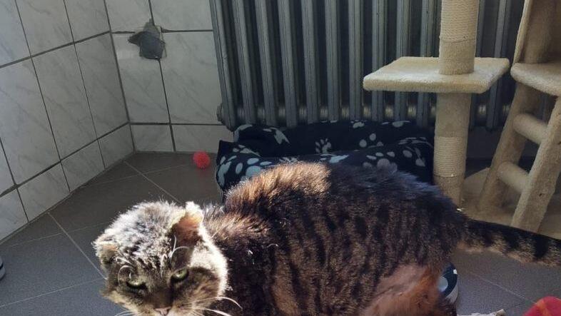 Die Tierpfleger haben sich einen passenden Namen für den Kater ausgedacht: Räuber Hotzenplotz. Über zehn Jahre Abenteuer hat der Streuner auf dem Buckel. "Er ist wohl ein richtiger Haudegen gewesen", sagt Schröder. Am rechten Ohr hat er eine Verletzung. Zur Verteidigung des Reviers musste der Kater so manchen Schlagabtausch einstecken.