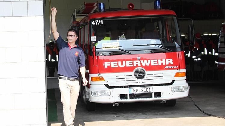 Gerald Heinle ist ganz geblendet, doch natürlich lässt es sich der Kommandant und Vorstand der Platzer Wehr nicht nehmen, den Besuchern das Tragkraftspritzenfahrzeug (TSF), Baujahr 1978, zu zeigen. "Ein neues Fahrzeug ist schon bestellt", sagt Bürgermeister Emmert. Es wird wieder ein TSF sein, aber ein VW Crafter und kein Ford Transit wie das alte.