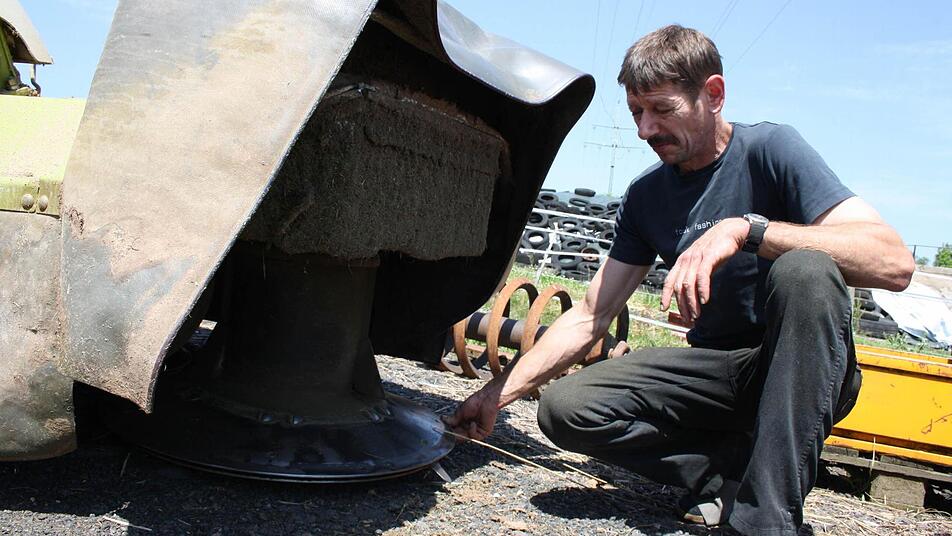 Messer rotieren mit Tempo 300 "Meistens betrifft es Wiesen im oder am Wald", kennt Landwirt Jürgen Hack seine Problemzonen. 60 Hektar Grünland bewirtschaftet der Wittershausener, um sein Milchvieh versorgen zu können. Zudem noch 80 Hektar Ackerland.