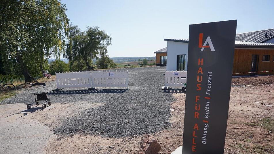 Schon beim Betreten des Hauses zeigte sich, wie großzügig es angelegt  ist. Das Grundstück, auf dem sich die alte Schule befand, bietet einen  exponierten Standort mit Blick über die Rhön bis hinein in den  Steigerwald. "Man sitzt eigentlich mitten in der Natur mit einem großen  Weitblick", fasst es Brigitte Schmidt vom Stiftungsvorstand zusammen.  Diese Weite, die durch den großen Raum mit  bodentiefen Fenstern  ermöglicht wird, soll sich auch im künftigen Nutzungskonzept  wiederfinden. "Wir sind ein offenes Haus und wir freuen uns auf viele  fröhliche Feste, Kulturveranstaltungen, Bildungsangebote und viel Musik."