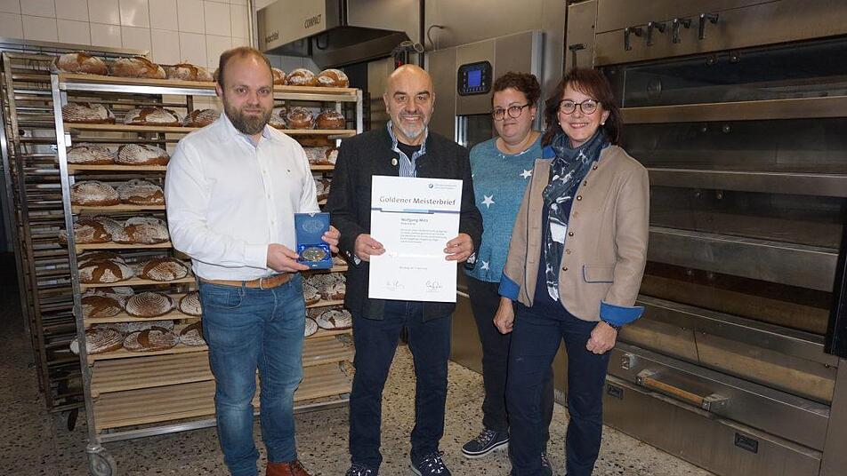 Seit 40 Jahren ist Wolfgang Metz Bäckermeister. Der Goldene Meisterbrief der Handwerkskammer Unterfranken konnte aber nicht bei einem großen Festakt überreicht werden, sondern musste, aufgrund der aktuellen Situation, per Post zugestellt werden. Dennoch freut sich Wolfgang Metz über dieses Jubiläum und mit ihm die ganze Familie. Ist es doch auch eine Anerkennung für die langjährige Tradition der Bäckerei Metz in Langenleiten, die bereits in der vierten Generation betrieben wird.