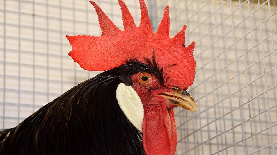 "Ein feiner Hahn in Größe, Farbe, Kammschnitt, sowie gutem Abschluss mit einer prima Standhöhe", so die Beurteilung eines "schwarzen Italieners", eines imposanten Hahnes, der jedem Bauernhof Ehre machen würde. Der mit dem Landesverbandsehrenpreis prämierte "Italiener" stammt aus der Zucht und Voliere von Kurt und Christian Heinrich und wurde bei der Lokalschau Geflügel, die gemeinsam mit der Gemeinschaftsschau Kaninchen in der Ausstellungshalle Nüdlingen stattfand, zur Wertung vorgeführt.