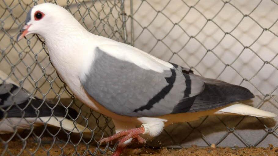 So ist auch die von Eugen Hillenbrand eingereichte und vorgestellte "Thüringer Flügeltaube, blau mit schwarzen Binden" ein zierliches Tier, das da in seinem Vorführkäfig umherläuft.