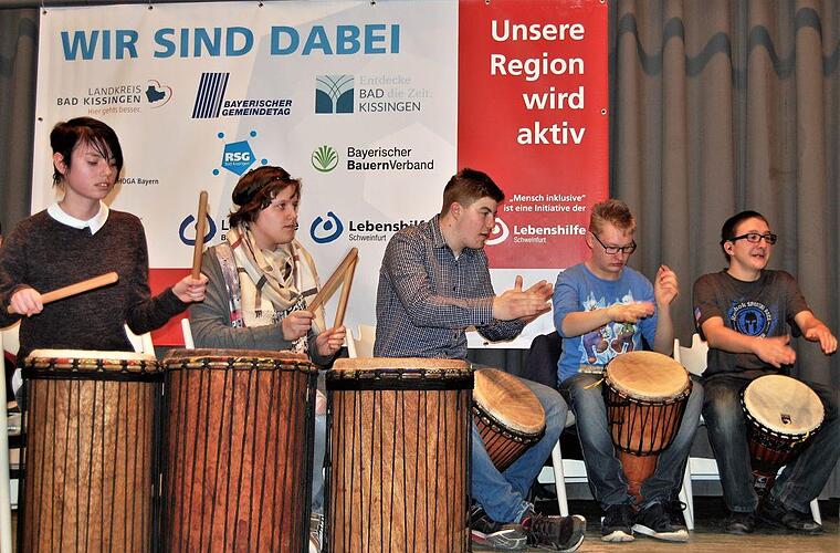 Bezirksrätin Karin Renner, schon seit Jahren als Behindertenbeauftragte des Bezirks Unterfranken mit dieser Thematik vertraut, unterstützte das Projekt: "Es ist für jeden Menschen wichtig, eine Arbeit zu haben, aber für Menschen mit Behinderung ist es noch wichtiger." Bedeutend sei dieses Projekt nicht nur für befähigte Mitarbeiter der Lebenshilfe-Werkstätten, sondern gleichermaßen für die Absolventen der Franz-von-Prümmer-Schule, ergänzte Monika Fella als Aufsichtsratsvorsitzende der Lebenshilfe Bad Kissingen. Die Percussion-Gruppe der Schule hatte im Wechsel mit der Veeh-Harfen-Gruppe der Nüdlinger Werkstätten den Festakt mehrfach musikalisch aufgelockert.
