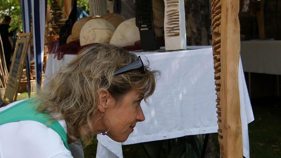 "Klein Montmartre" möchte Künstler und Kunsthandwerker aus ihren Werkstätten und Hobbykellern in die Öffentlichkeit holen. Zwischen Kirche und Mönchsturm können sie ihre Werke präsentieren. Und die Aussteller nutzen diese Chance gerne: "Für einen normalen Markt sind meine Objekt nicht geeignet", sagt Thomas Krapf aus Aura. Zum ersten Mal zeigt er seine Holzarbeiten außerhalb des Freundes- und Bekanntenkreises.