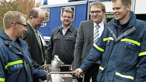 Bei einer Ausbildungsveranstaltung in der THW-Unterkunft in der Waldsiedlung Rottershausen übergaben Rotary-Präsident Jochen Köllmer (Bad Kissingen) und Schatzmeister Werner Klöffel (Nüdlingen) die Pumpe an den