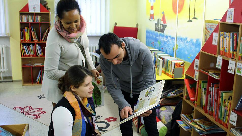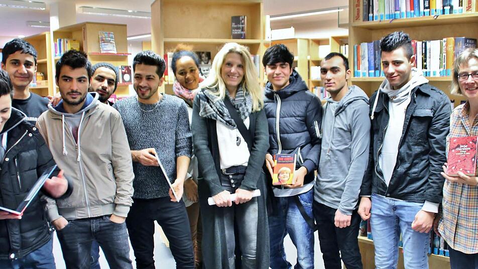 Mit so viel Andrang hatte die Leiterin der städtischen Bücherei Gabriele Reichert nicht gerechnet. Aber als sie die Tür öffnet, drängt sich ein ganz anderes Publikum als sonst in den Raum vor der Theke. Die Lehrerinnen der Berufsintegrationsklasse der privaten Pflege- und Berufsfachschule sind mit ihren Schülerinnen und Schülern gekommen, um den Flüchtlingen zu zeigen, dass sie sich auch in ihrer Freizeit ohne Zwang der Sprache und Kultur ihrer derzeitigen Heimat nähern können.