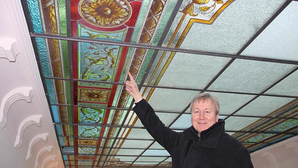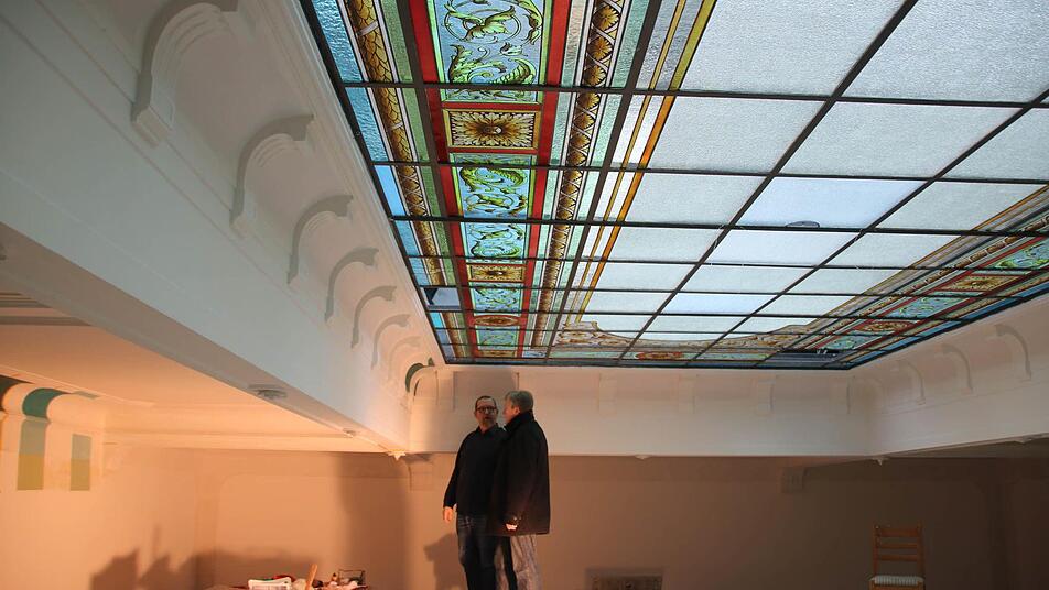 Über Jahrzehnte habe sich Staub und Schmutz auf den historische Scheiben abgelagert, nun erstrahlen sie wie zur Bauzeit. Einige Scheiben seien geklebt worden, an kleinen Stellen seien Retuschen notwendig gewesen. Insgesamt waren die Decken aber in einem sehr guten Zustand. "Solche Fenster haben wir sonst nur in Kirchen, aber über Kopf als Lichtdecke gibt es das nur noch in Bad Kissingen", berichte Alsheimer, dessen Büro schon viele Baudenkmäler restauriert hat. In Würzburg zum Beispiel seien fast alle Buntglasdecken im Zweiten Weltkrieg zerstört worden.
