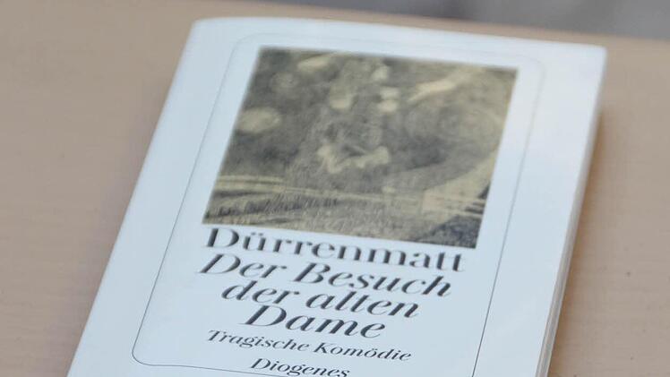 Die Grundlage für das Stück der Theatergruppe. Eine "Tragische Komödie" von Friedrich Dürrenmatt. Sie blickt über den roten Rahmen ihrer Brille. "Noch etwas lauter", ruft sie den Schülern zu, die auf der Bühne die erste Szene von "Der Besuch der alten Dame" durchspielen.