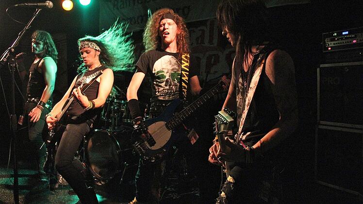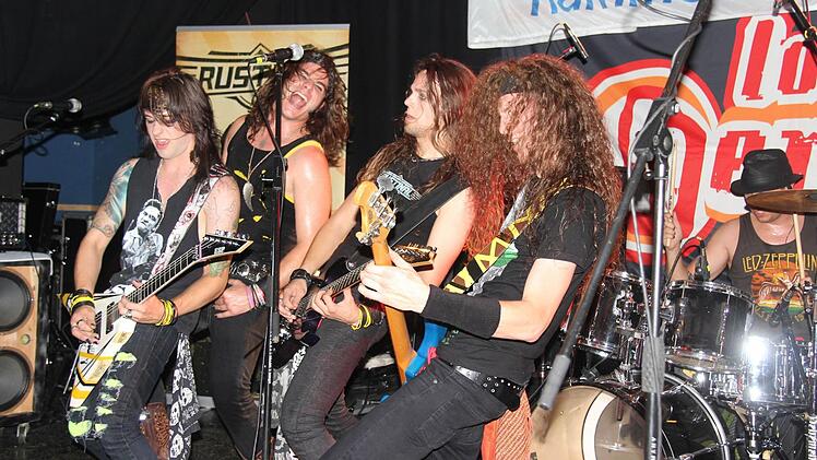 Eine optische Superschau lieferte die Münchner Band "Rustinal". Die bewegungsfreudigen Männer ließen zu ihren Songs die Haare fliegen und waren nach ihrem 30-minütigen Auftritt schweißgebadet.