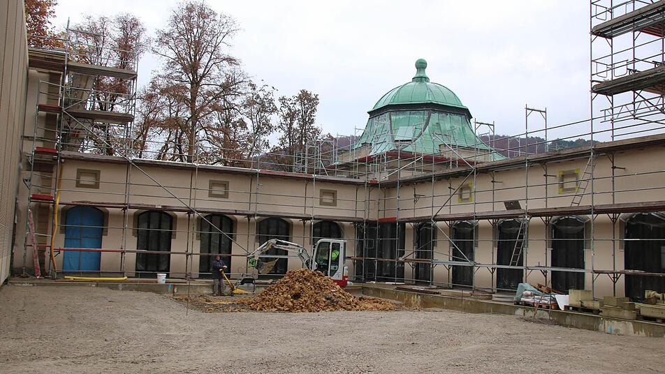 Nach und nach zeigt sich die Pracht des Luitpoldbades: Der komplett renovierte Westflügel ist bereits gerüstfrei, Spaziergänger können hausende neue Baluster, hunderte neue Fenster, die restaurierten Naturstein-Gesimse und den neuen Anstrich bewundern. "Im Moment sind wir genau im Zeitplan", freut sich Planer Ralf Alsheimer vom Büro "Grellmann, Kriebel, Teichmann" über den Stand des 37-Millionen-Euro-Projektes. Im Moment laufe alles auf einen pünktlichen Einzug von Vermessungsamt, Staatsbad GmbH und Finanzkammer im Juli hinaus, aber: "Zum Ende hin wird's oft spannend", lässt er sich eine kleine Hintertür offen.