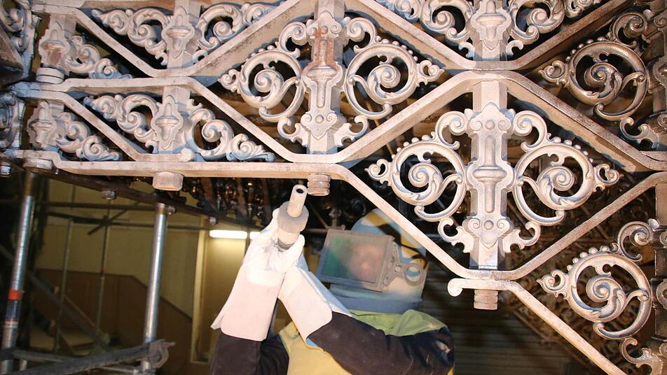 Baulärm ist zwar trotzdem zu hören, allerdings nur von Gewerken, die weitgehend eigenständig sind: Die Steinmetze etwa meißeln an der Fassade, die Restauratoren befreien die historischen Treppenhäuser von alten Lacken und Rost, auch auf dem Dach soll bald wieder weiter gearbeitet werden.