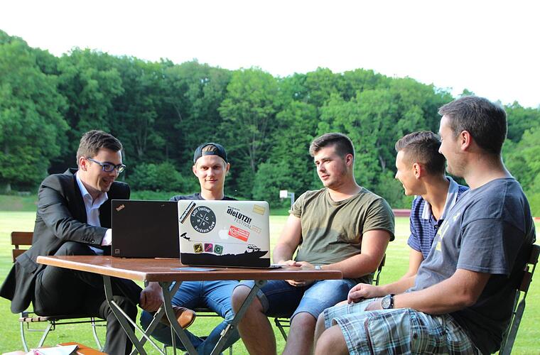 Vor dem Pfingstwochenende treffen sich mit Martin Werner, Christian Stahl, Daniel Seufert, Robin Wilm und Matthias Wetterich fünf Jungs aus dem Kernorganisatorenteam der Lutzi, um die nächsten Schritte durchzusprechen. "Erst markieren wir das Gelände, wo was zu stehen hat. Dann wird in den nächsten Tagen entsprechend gestellt", erklärt Stahl. Da sie das Open Air inzwischen zum achten Mal auf die Beine stellen und sich auf dem Bühnengelände zuletzt keine großen Änderungen mehr ergeben haben, läuft der Aufbau mit einer gewissen Routine ab.