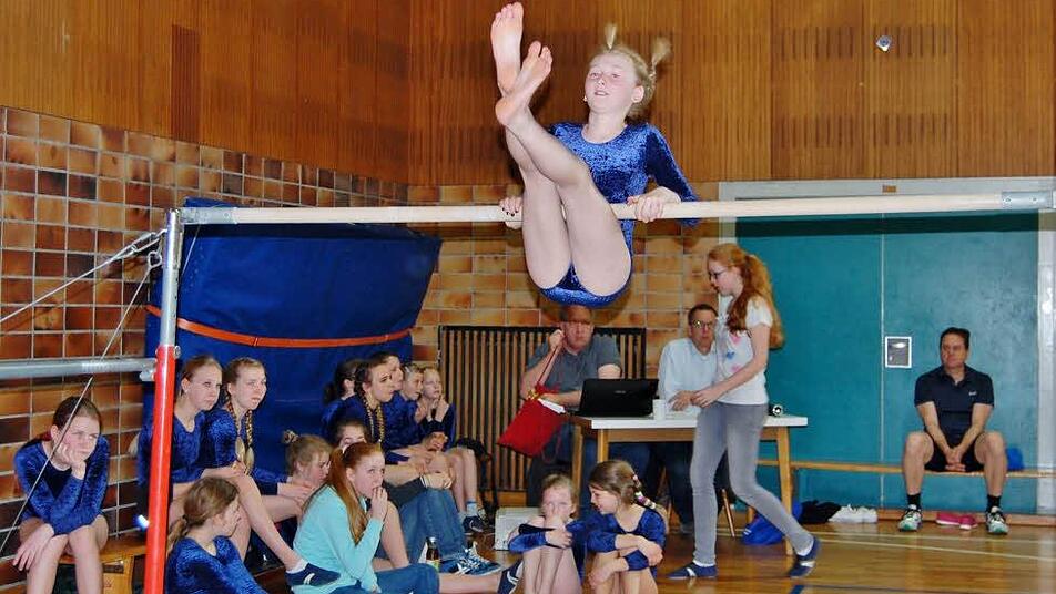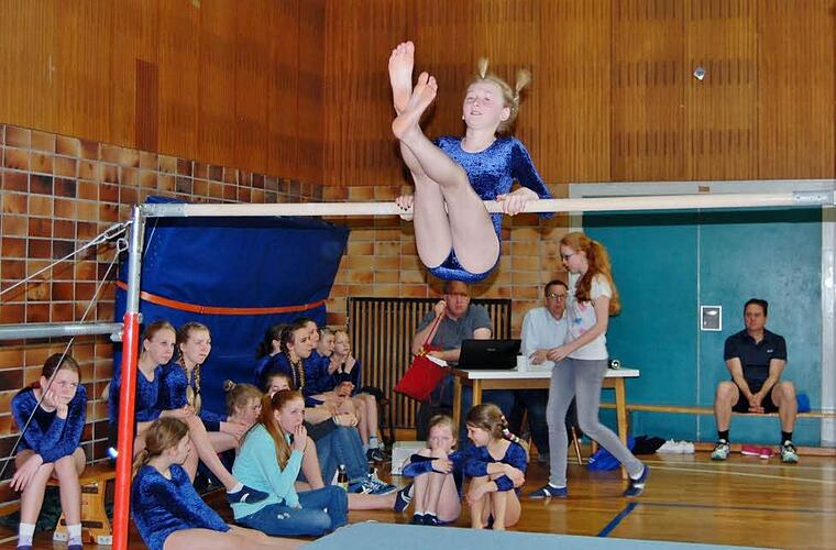 Während der dreistündigen Wertungsrunde zeigten die Mädchen in der Turnhalle des Saalbaues bei absoluter Stille ihre Pflichtübungen am Stufenbarren und Balken, beim Sprung und Bodenturnen. Manche der Älteren hatten sich schon eine eigene Kür ausdenken und nun vor den Wertungsrichtern zeigen dürfen. "Die Mädchen sollen nicht nur auf Sicherheit gehen", erklärt Trainerin Almut Lülf den Grund. "Man muss auch mal etwas riskieren, auch wenn es vielleicht beim ersten Mal nicht klappt."